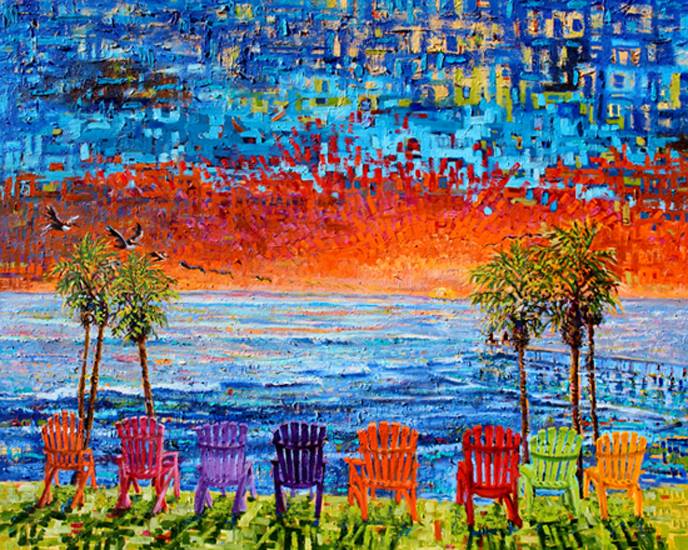 Clients hire Ray to create paintings from canvas to fit perfectly in the a specific spot on the wall. Clients also have the freedom to choose just about any scene to be painted. Scenes include beach scenes, local home scenes, pelicans, spoonbills, abstracts, sail boats, and well…. almost anything. They then select one of his painting styles to determine the price.