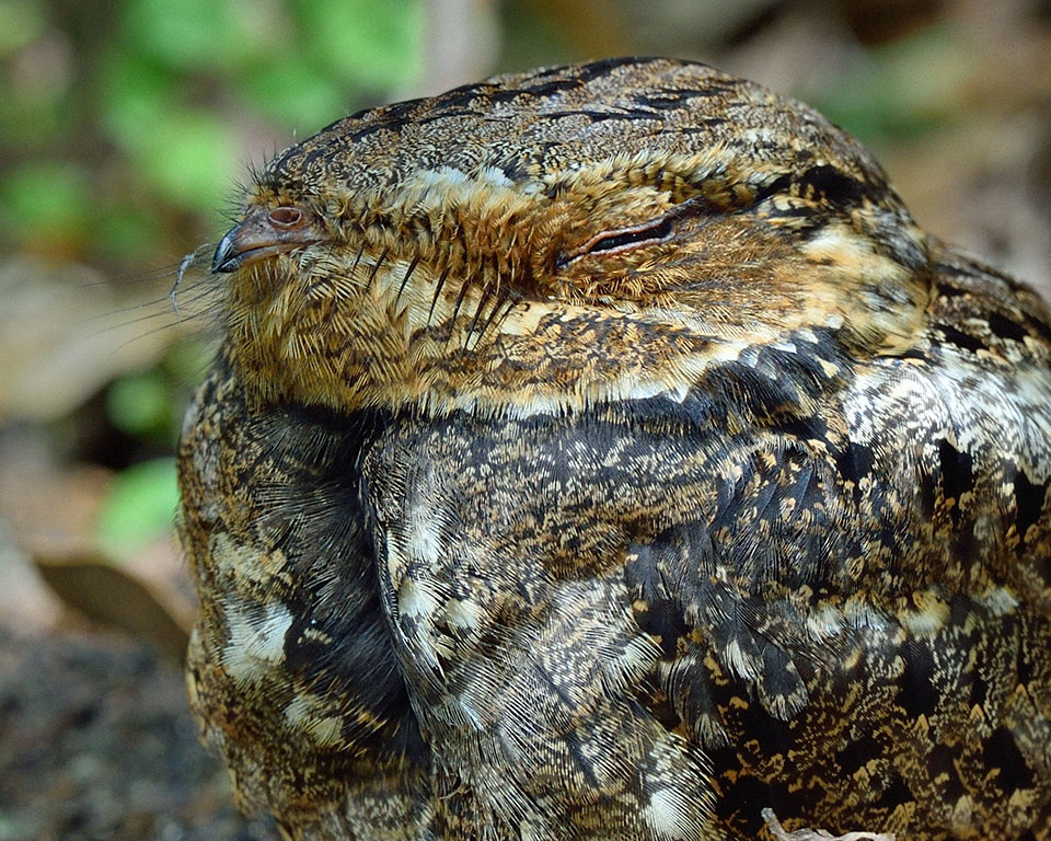 You may hear the Chuck-will’s-widow singing its name before you see it, as its leafy camouflage makes it hard to spot. It is the largest nightjar in North America, larger than the Common Nighthawk. It captures insects and even small birds in its wide open mouth.