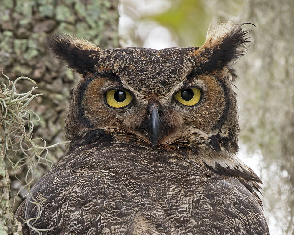 A big owl with feathered tufts, yellow eyes and a deep hoot, the Great Horned Owl is an aggressive and powerful hunter. It’s prey can be anything from rabbits, bird and snakes to smaller snacks of mice, frogs and insects.